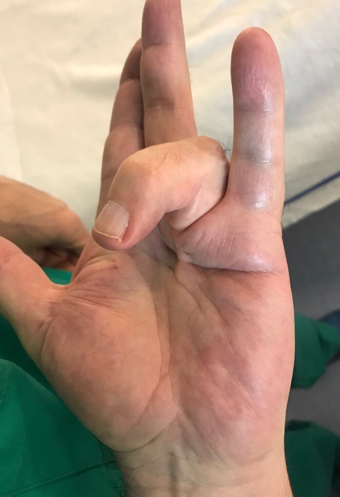 Mallet Finger is a deformity in which the fingertip bends downward at the end joint and can no longer be straightened. Occasionally it may associate a fracture of the base of the first phalanx