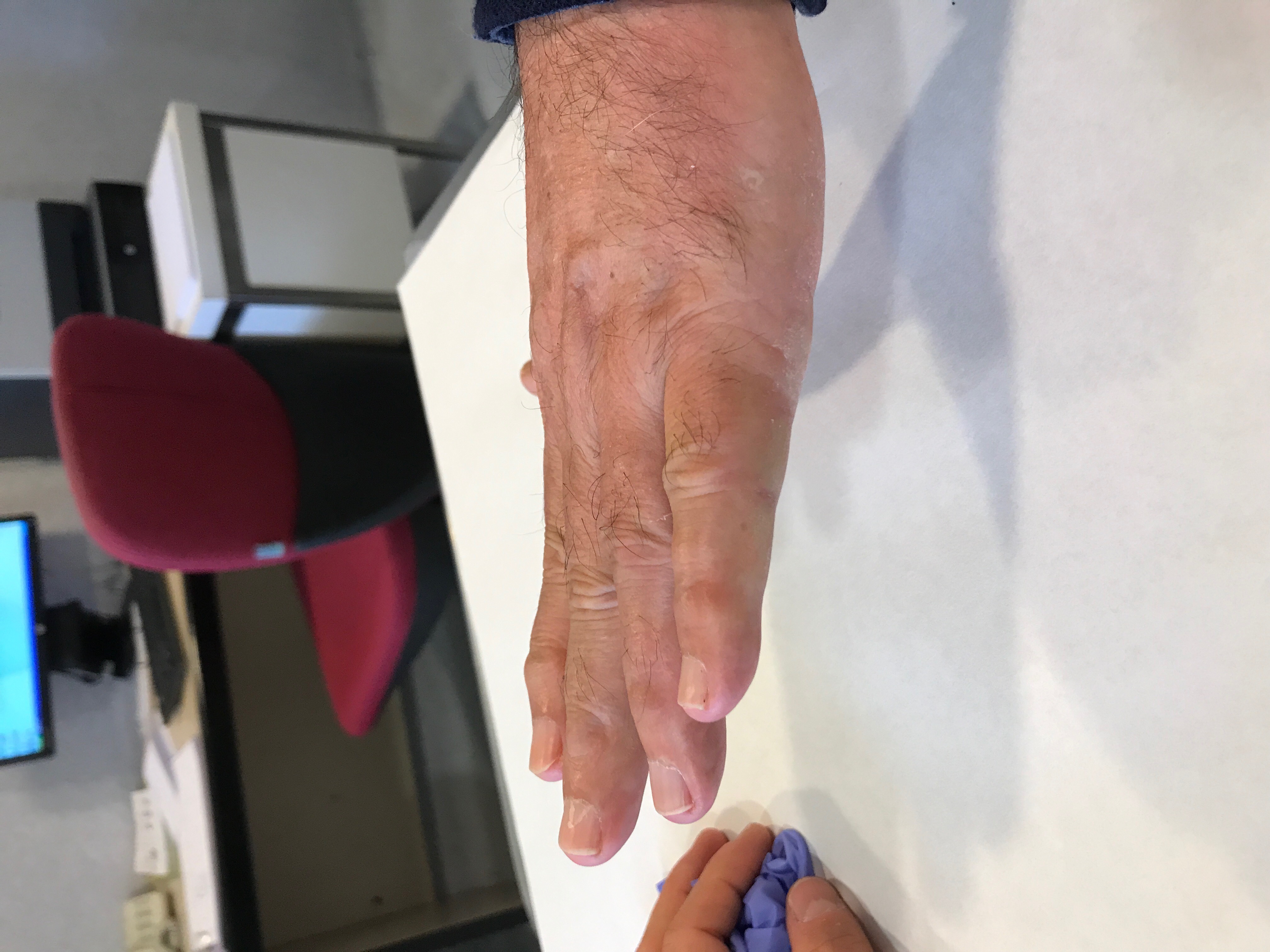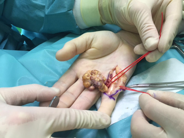 - Regional Fasciectomy: This is the most used treatment. Zigzag incisions are made in the palm and along the fingers. This allow the removal of abnormal tissue responsible for the flexion of the fingers. These incisions take between two and three weeks to heal and will be thick for several months. Reeducation and wearing a splint to extend the fingers are very often necessary. Occasionally, skin grafts may be needed to replace damaged skin. This makes this operation tricky and the proximity between abnormal tissues and vessels and nerves. Dissection and ablation of abnormal tissues in contact with vessels and nerves is difficult and should always be done with microsurgical glasses.