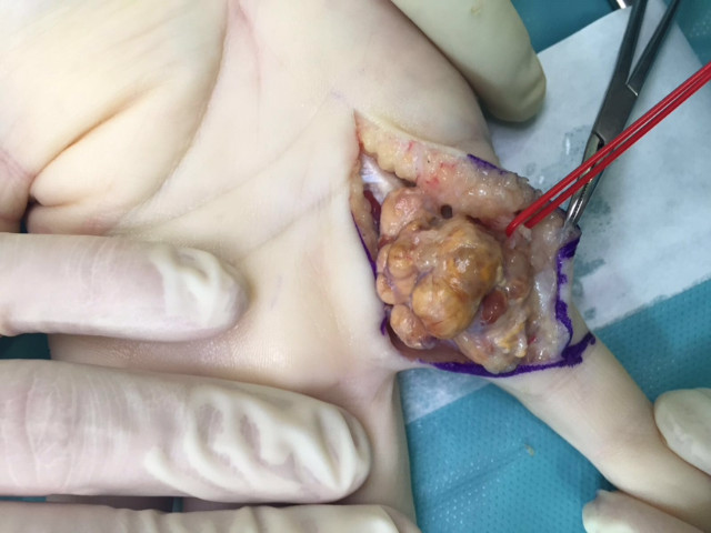 Most hand tumors will require surgical excision to completely remove the mass and prevent recurrence. Once the mass is removed it is sent to a lab for pathology. This is the only way to determine whether the growth is benign or malignant. If non-cancerous, no other treatment (except possibly hand therapy) is required as the lump has already been removed.